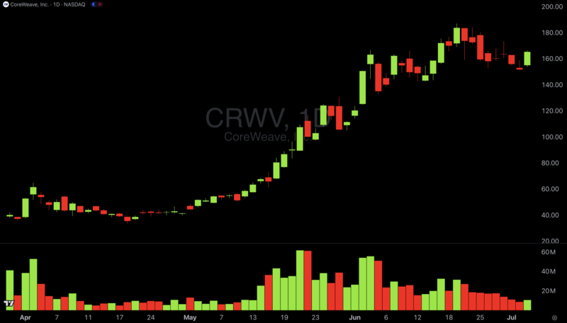 CRWV up 3% this week after it was reported that the company became the first hyperscaler to deploy Nvidia’s GB300 NVL72 platform.