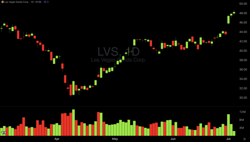 LVS up 10% this week as casino stocks were broadly strong on Tuesday.