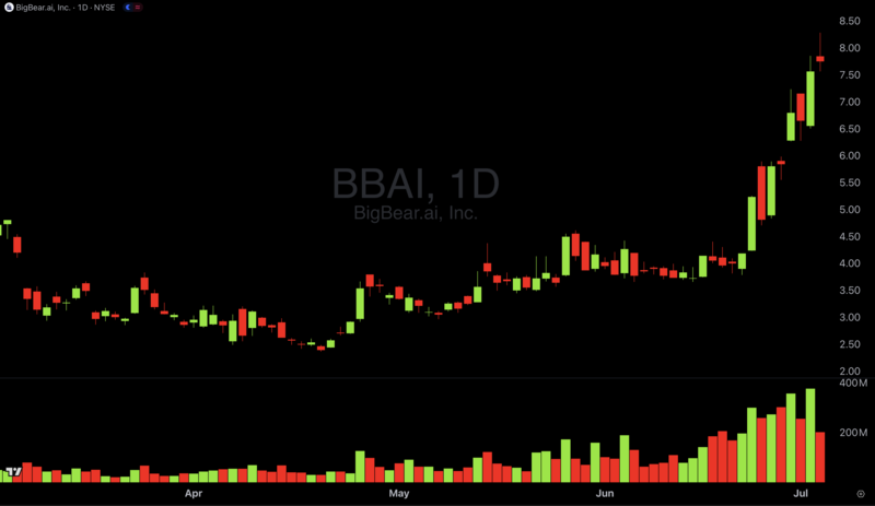 BBAI up 35% this week on continued momentum in small-cap AI-related stocks.