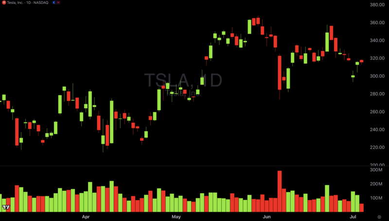 TSLA down 2% this week amid public disagreements between Musk and Trump on federal spending issues. However, the release of its Q2 production numbers of 410,244 vehicles and total deliveries of 384,122 vehicles exceeded expectations.
