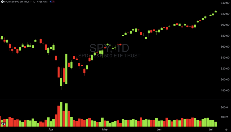 Markets rallied after the newly passed “One Big Beautiful Bill Act” introduced sweeping tax cuts and spending changes that will impact the financial landscape. SPY was up 2% on the week and is trading at all-time highs.
