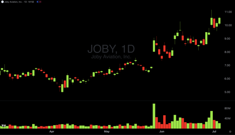 JOBY up 12% this week after the company announced it completed a series of test flights in Dubai.