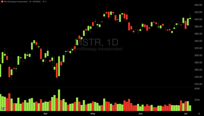 MSTR up 4% this week as the company added another 4,980 BTC to its treasury this past week.