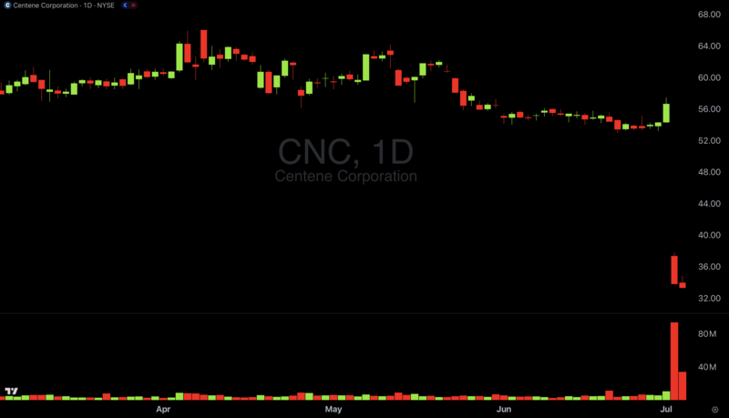 CNC down 37% this week after the company withdrew its previous 2025 GAAP adjusted diluted EPS guidance, including the underlying guidance.