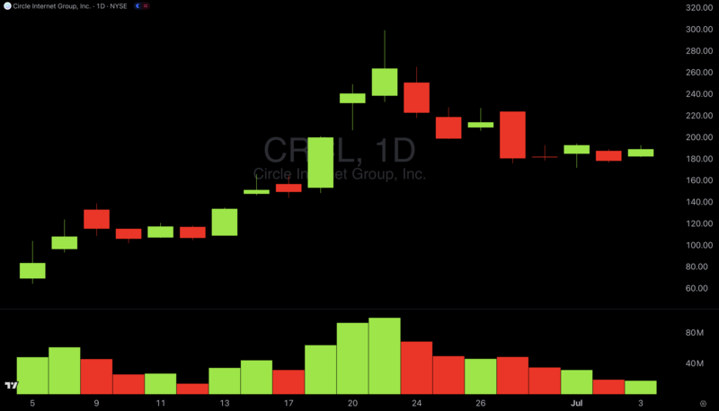 CRCL down 12% this week after Ripple announced that it applied for a US banking license.