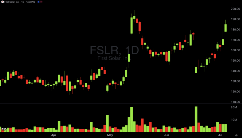 FSLR up 17% this week as an amendment to ease solar and wind tax credit phaseouts was added to the spending bill.