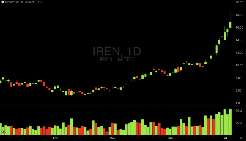 IREN up 25% this week after the company announced it purchased 2.4K next-gen Nvidia Blackwell B200 and B300 PGUs for $130M.