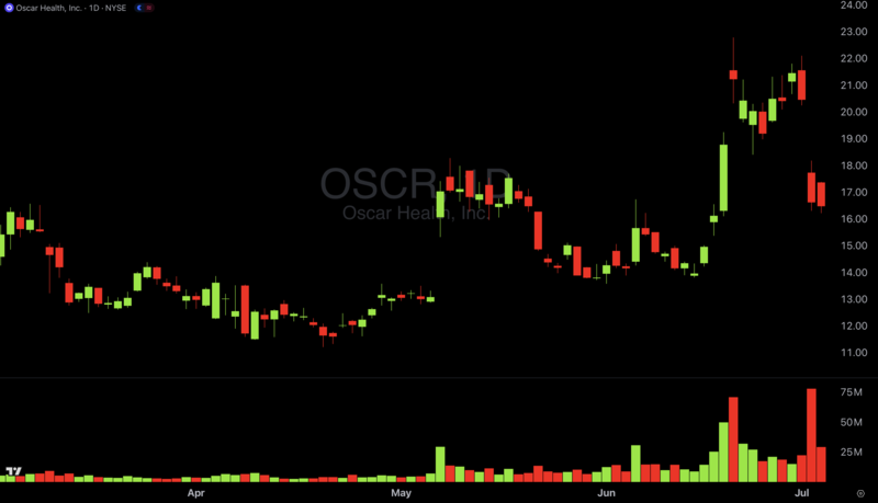 OSCR down 19% this week after Barclays initiated coverage on the stock with an Underweight rating and a $17 price target.