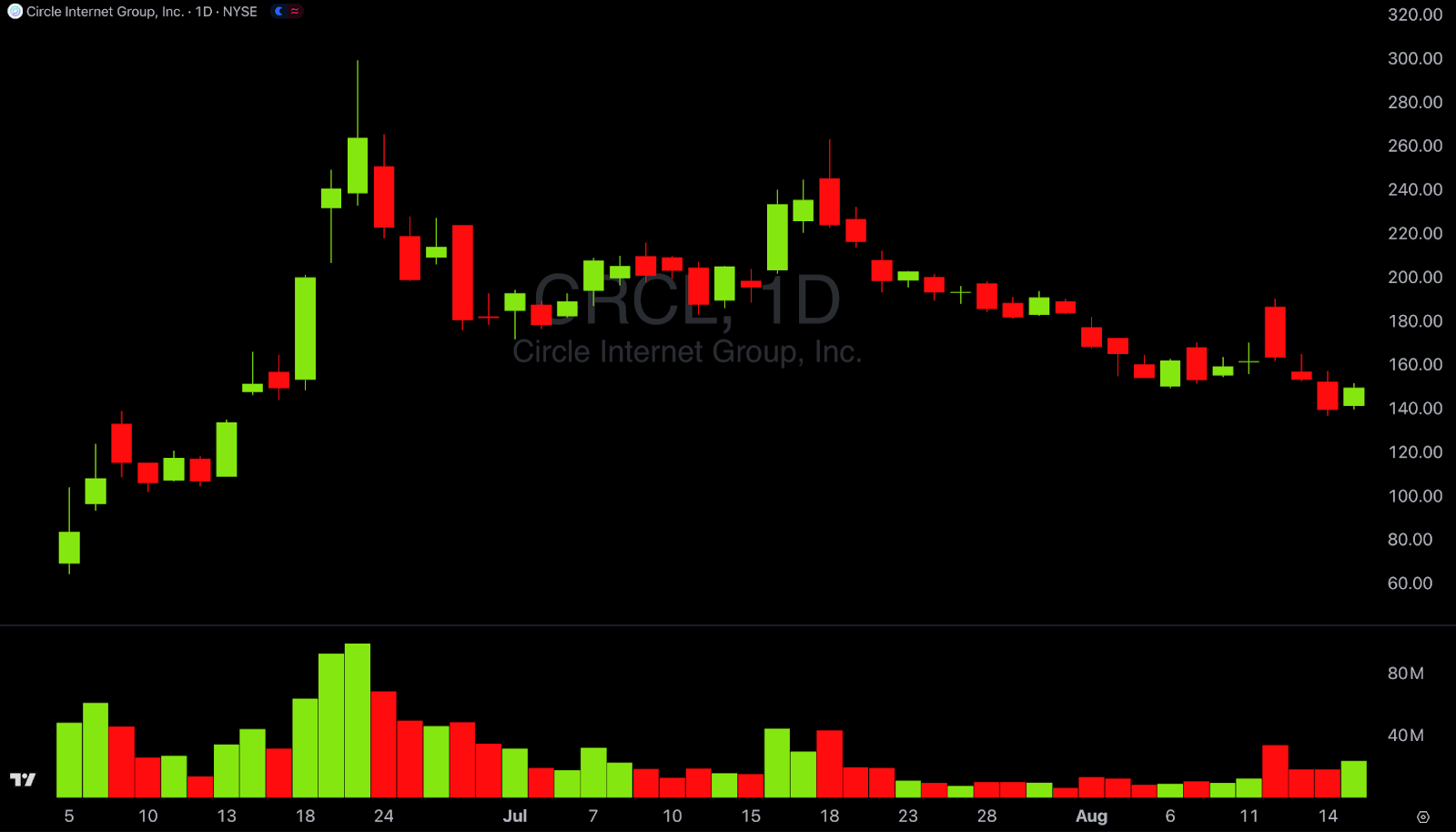 CRCL down 4% this week after the company recently announced a public offering of 10M shares.