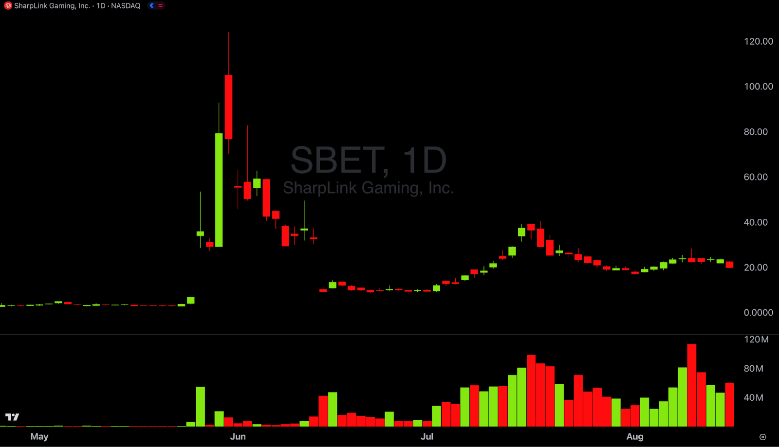 SBET down 17% this week after the company reported financial results and ETH dipped below recent highs on Friday.