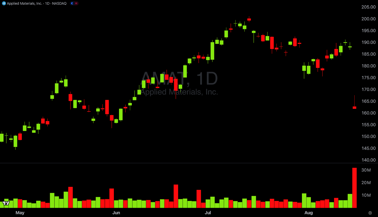 LRCX down 3% this week after AMAT issued weak forward guidance, and Trump stated that he would be setting tariffs on chips next week.