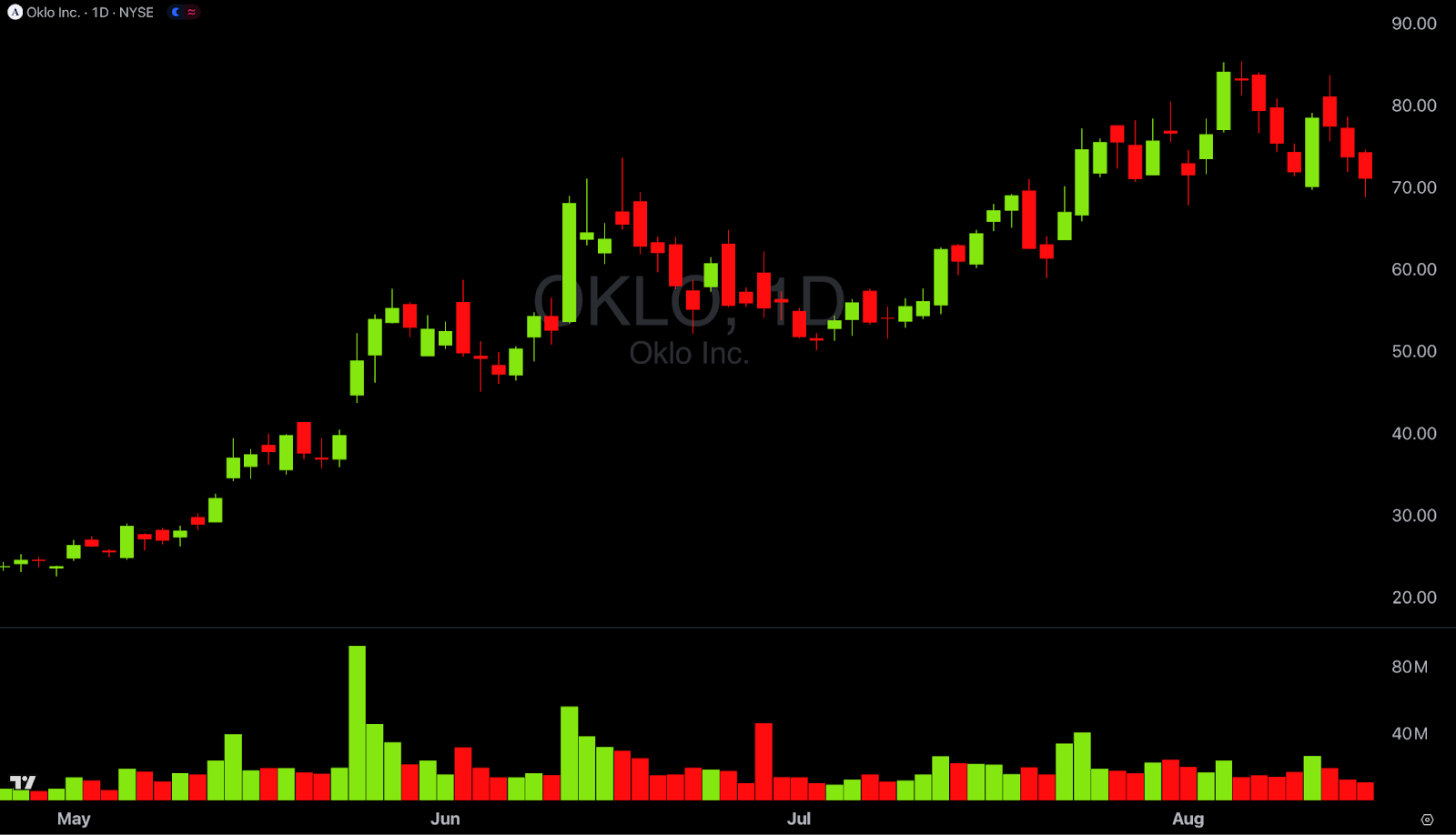 OKLO down 2% this week following the release of the company’s quarterly financials and the announcement that Oklo and Lightbridge are to evaluate additional co-location opportunities for manufacturing.