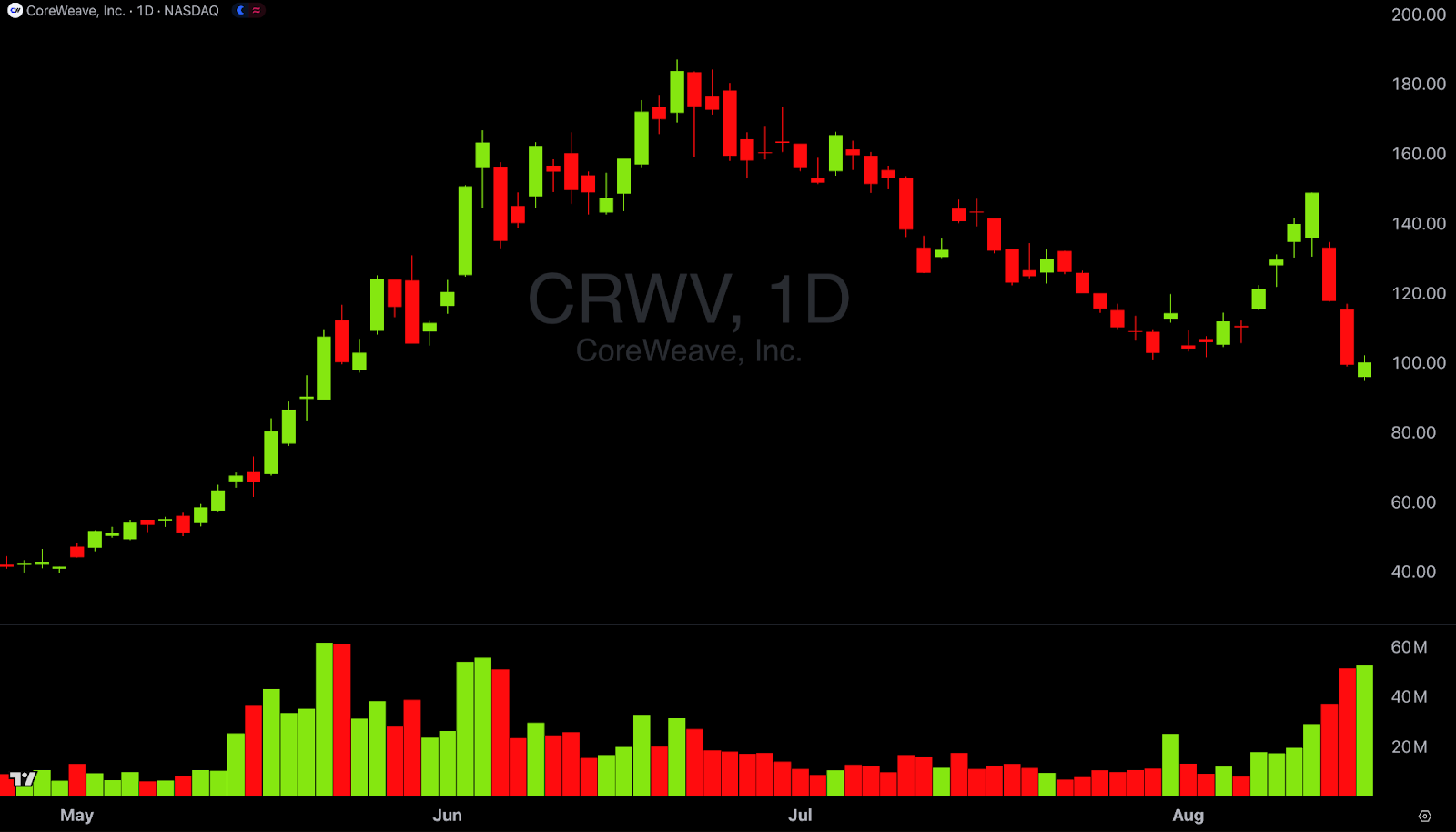 CRWV down 23% this week after the company recently released financial results and reports of share lockup periods ending this week circulated.