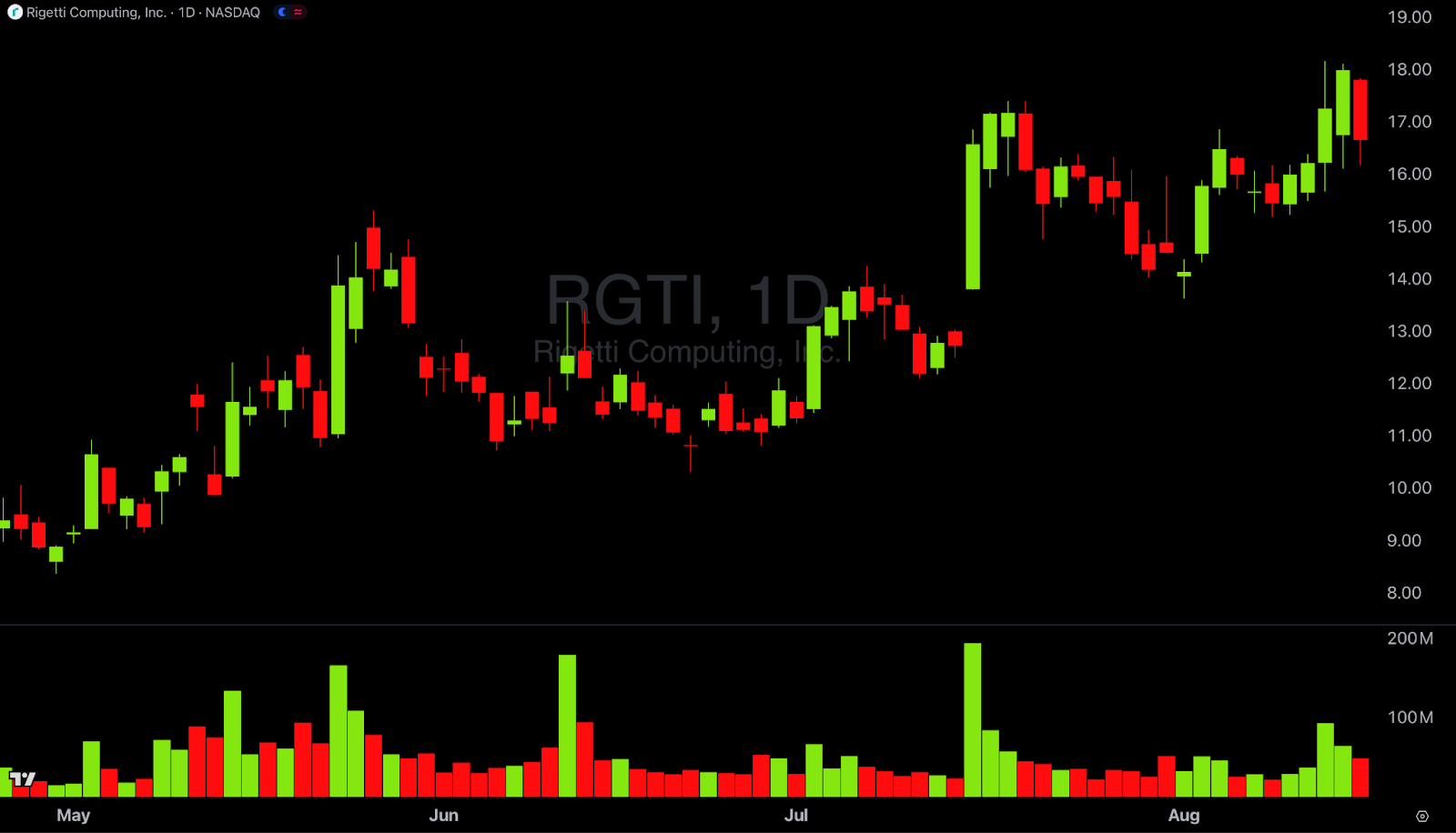 RGTI up 9% this week on continued momentum following its earnings release and a price target hike by Benchmark.