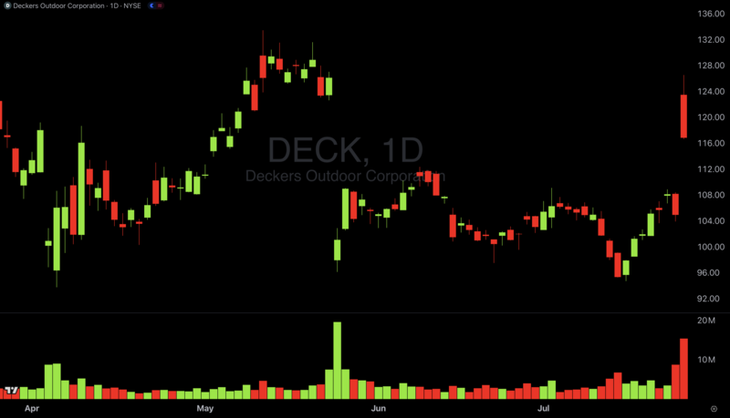 DECK up 13% this week after the company reported better-than-expected earnings and received several price target increases from analysts.