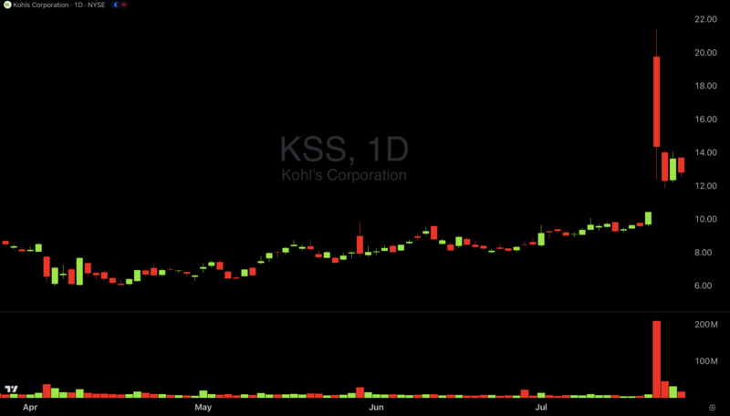 Kohl’s (KSS) shares surged nearly 38% earlier this week as retail investors revived interest in meme stocks, fueled by online communities like Reddit’s WallStreetBets.
