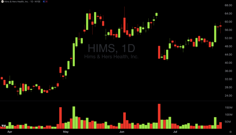 HIMS up 14% this week as the stock gained momentum amid a short-covering rally on Wednesday.