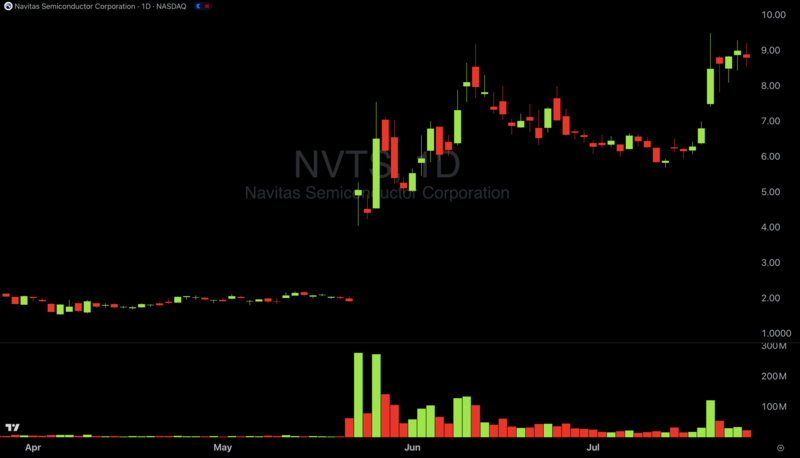 NVTS up 39% this week amid apparent short covering as social media mentions were higher than normal. Additionally, the company stated it will report Q2 financial results on Monday, August 4th.