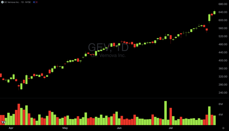 GEV up 9% this week after the company reported solid financial results and stated its guidance will be towards the top of the estimated range.