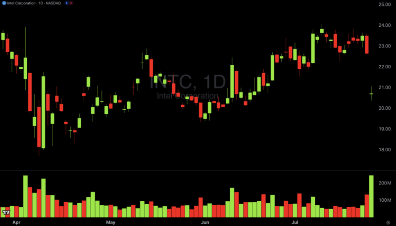 INTC down 12% this week after the company reported worse-than-expected Q2 adjusted EPS results and issued Q3 guidance below estimates.